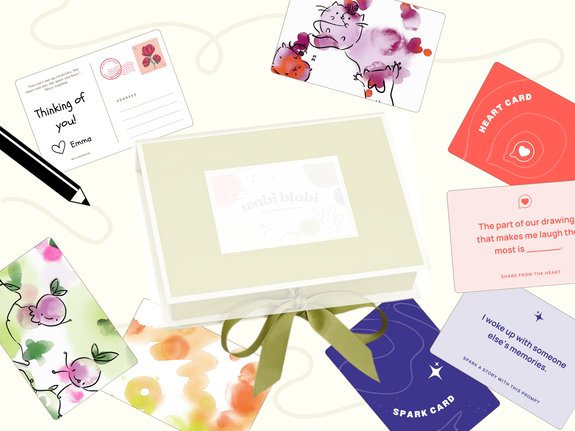 Remember spotting dragons and faces drifting through the clouds? Wabi Blobi brings that same carefree joy to your table. Turn watercolor blobs into playful doodles and surprising stories and celebrate creativity together.